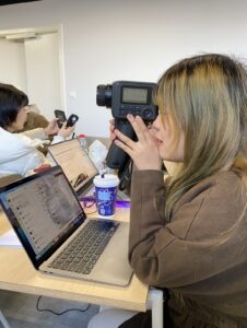 また、他の授業では医学部との共同プロジェクトで薬品管理のシステムを現代にマッチした製品にデザインしたり、カメラのLUMIX(Panasonic製)と協賛でカメラを借りてAIをテーマにシナリオを作り、企業メンターのサポートの元でCMとして使う広告映像を撮影から編集まで手がけました。