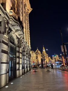 到着後すぐは、上海に来れば誰もが訪れる外灘(wài tān ワイタン、バント)の通りのホテルに泊まりました。この辺りの夜景は非常に煌びやかで、ついに大都会にやってきたのだと実感しました。
